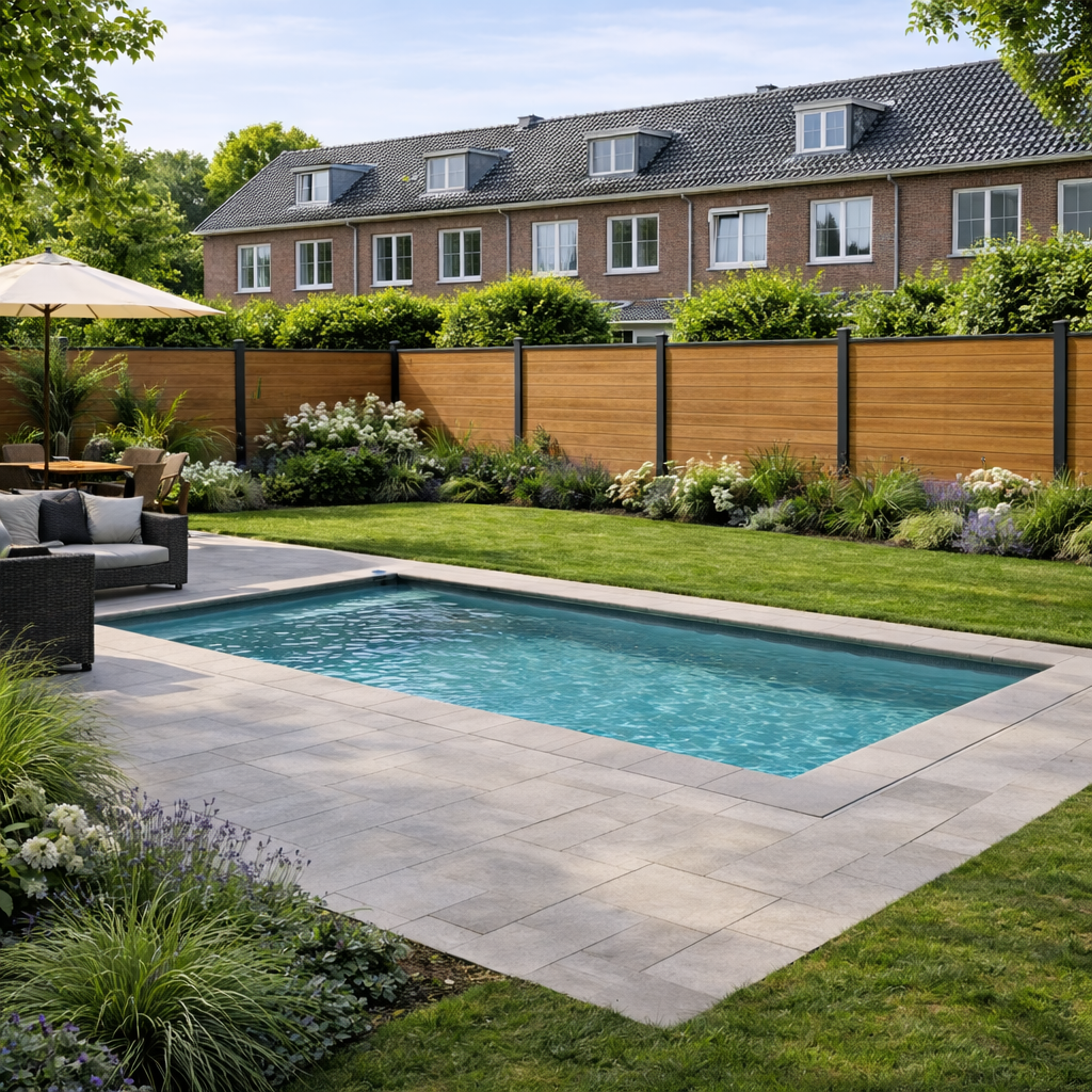 Een luxe tuinafscheiding met de uitstraling van modern hout, maar zonder het onderhoud. De Composiet Schutting Houtnerf Eiken - Exclusive biedt een perfecte balans tussen stijl, duurzaamheid en gemak. De verfijnde houtnerfstructuur in een eigentijdse eiken kleur zorgt voor een rustige, moderne uitstraling die jarenlang meegaat zonder verkleuring of verwering.