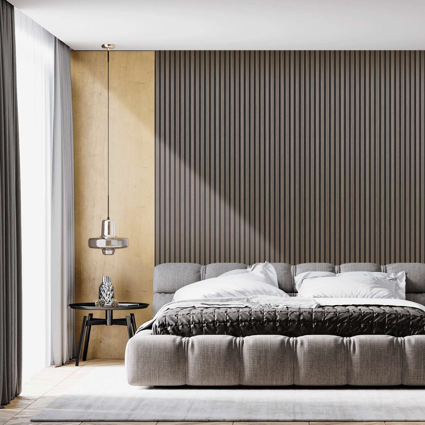 De natuurlijke houtfineerafwerking op MDF-latten en de duurzame akoestische viltachterzijde zorgen niet alleen voor een verfijnde uitstraling, maar verminderen ook storende galm en echo’s voor een aangename akoestiek.