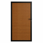 De deur is vervaardigd uit hoogwaardig hout-kunststof composiet (WPC). Dit materiaal combineert de natuurlijke uitstraling van hout met de voordelen van kunststof. Hierdoor is de deur kleurvast, vochtbestendig en onderhoudsarm. Het aluminium frame zorgt daarnaast voor extra stabiliteit en voorkomt kromtrekken of vervormen.